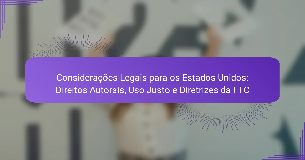Compreender o panorama legal de direitos autorais, uso justo e diretrizes da FTC é essencial para criadores e empresas nos Estados Unidos. As leis de direitos autorais protegem a propriedade intelectual, enquanto o uso justo permite o uso limitado de materiais protegidos por direitos autorais sob condições específicas. Além disso, aderir às diretrizes da FTC garante transparência e honestidade nas práticas de marketing digital, protegendo tanto os consumidores quanto as marcas.