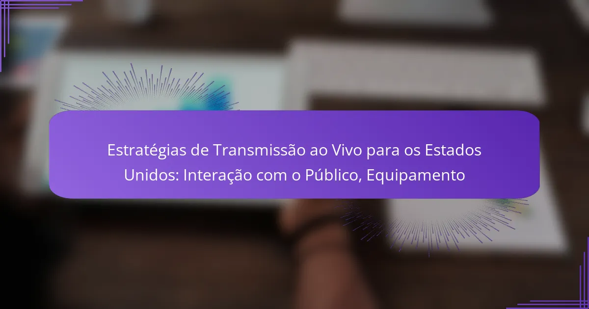 As estratégias eficazes de streaming ao vivo para interação com o público nos Estados Unidos se concentram em envolver os espectadores em tempo real e melhorar sua experiência geral. Utilizar vários métodos interativos pode aumentar significativamente a participação e a satisfação dos espectadores durante as transmissões ao vivo.